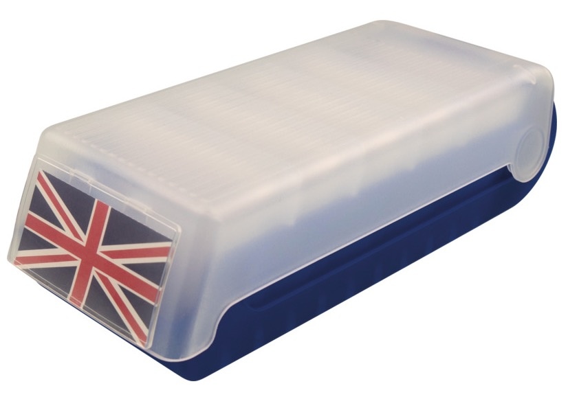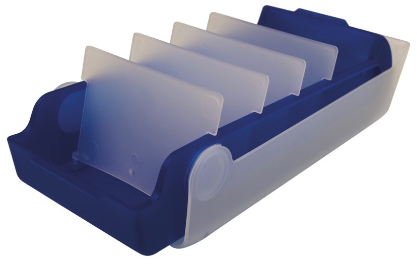 Handige, kunststof opbergbox voor A8 formaat flashcards. Er worden 4 tabs meegeleverd, je kunt dus 5 vakjes maken. Levering is inclusief 100 Kaartjes en wat ook handig is: op de voorkant zit een insteekvenster, hierin kun je een kaartje doen met de omschrijving van de inhoud. Voor dit venster worden 4 vlaggen meegeleverd, dat scheeltje voor de talen in ieder geval al het schrijfwerk.