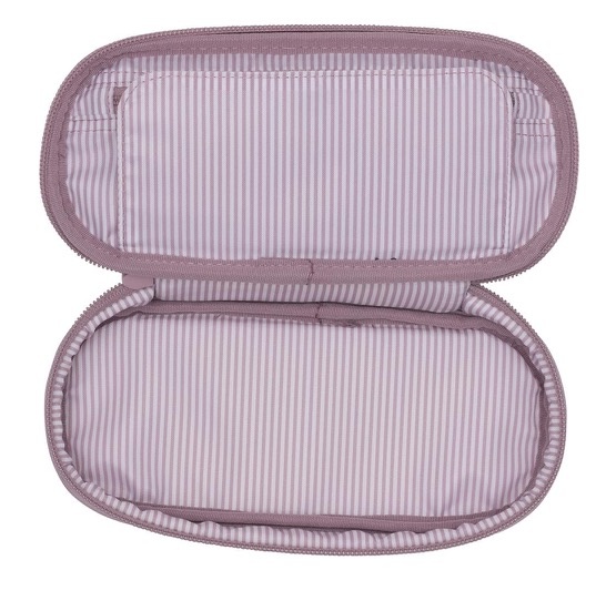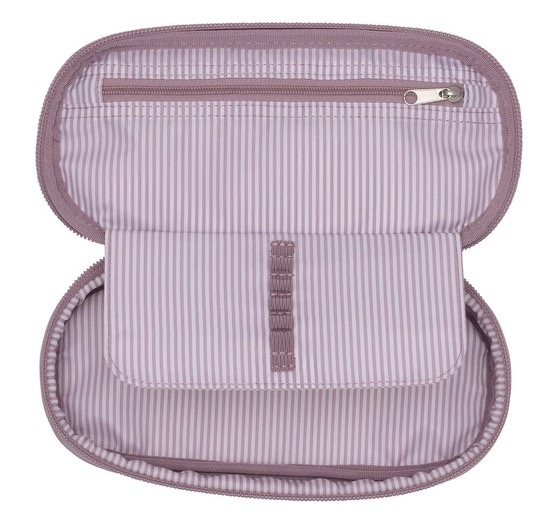Luxe Beckmann schooletui, Organic Rose. Donker roze met fluweel-effect. Dit extra grote etui is ovaal van vorm en voorzien van lussen voor losse schrijfwaren.