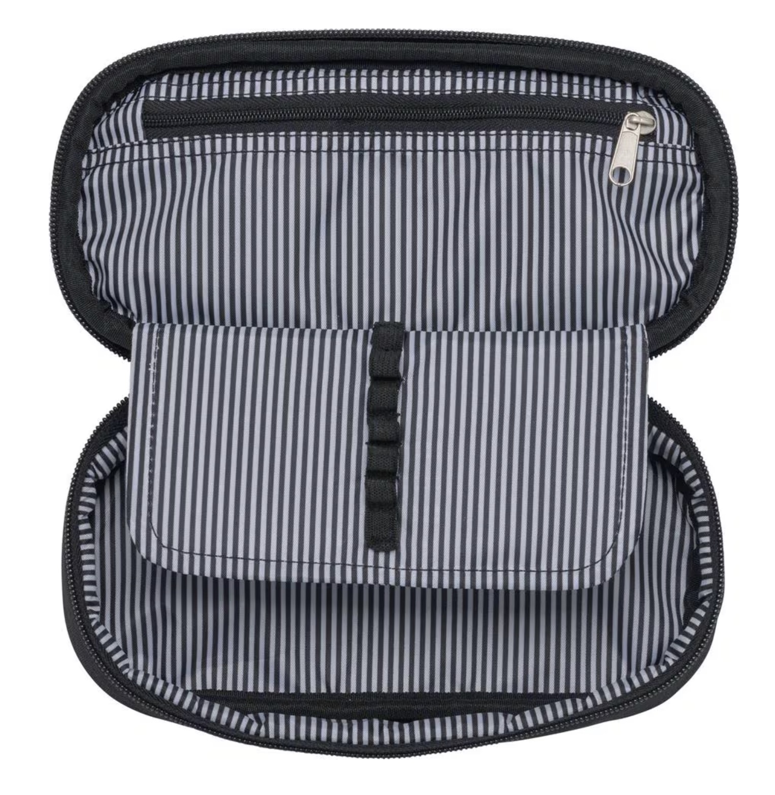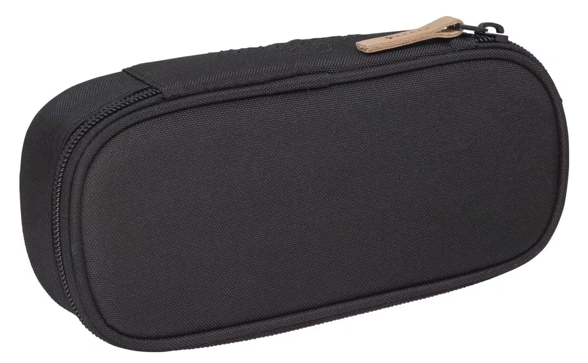 Luxe Beckmann schooletui, effen zwart. Dit extra grote etui is ovaal van vorm en voorzien van lussen voor losse schrijfwaren.