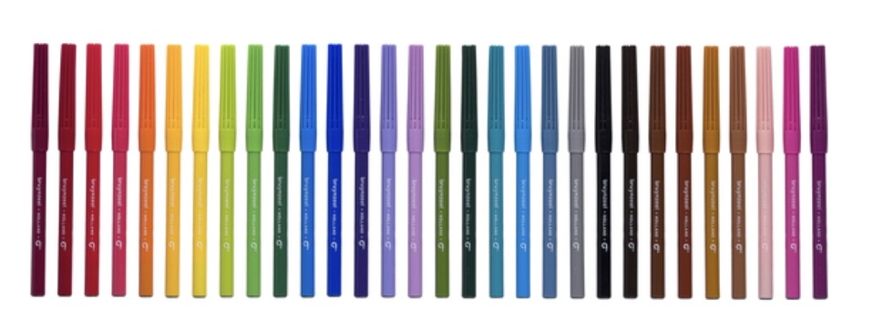 Voordelige viltstiften van Bruynzeel. Deze Felt tips stiften hebben nog wat bijzonders: Als ze ietsje zijn uitgedroogd, kun je de punt even in water houden. daarna doen ze het weer!