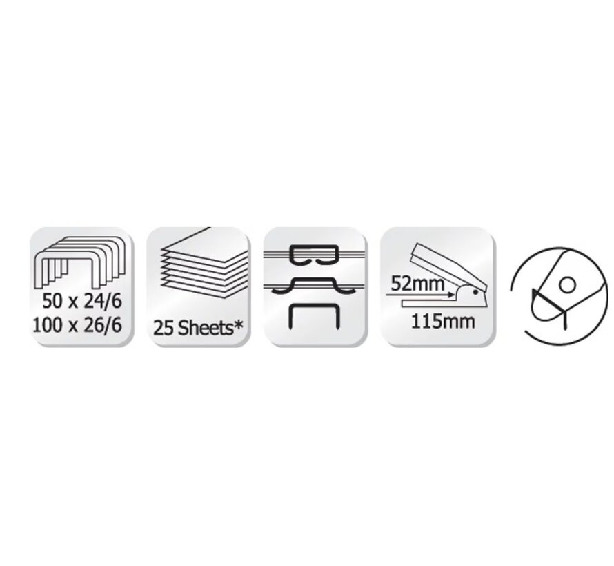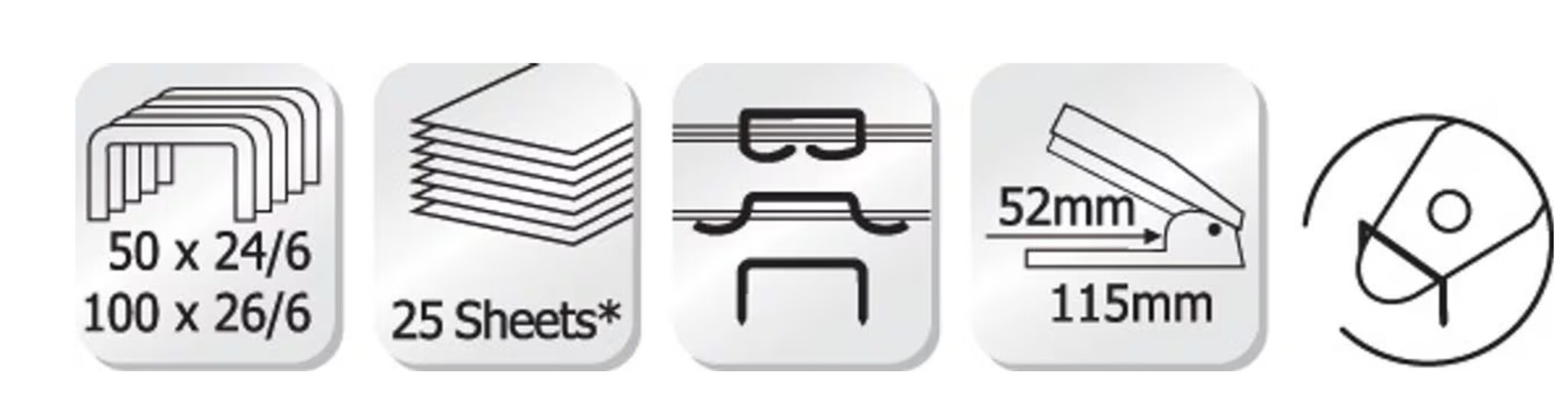 Voordelige nietmachine, voor standaard 24/6 nietjes. Past niet in je etui, geschikt voor thuisgebruik; voor als je net wat meer velletjes tegelijk wilt nieten.