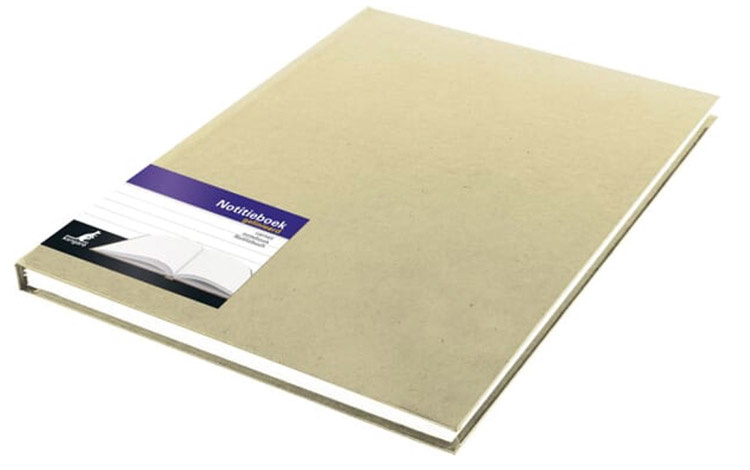 A4 lijntjes notitieboek met hardcover van kraft karton. Het zogenaamde gelinieerd schrift met een stevig, dik kaft. Voorzien van FSC keurmerk.
