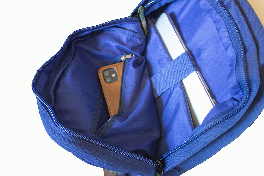 Dat gaat eigenlijk prima, ondanks de compacte afmetingen. Deze tas heeft een dik gewatteerde rug en een versterkte bodem van leer, met tevens zachte voering.