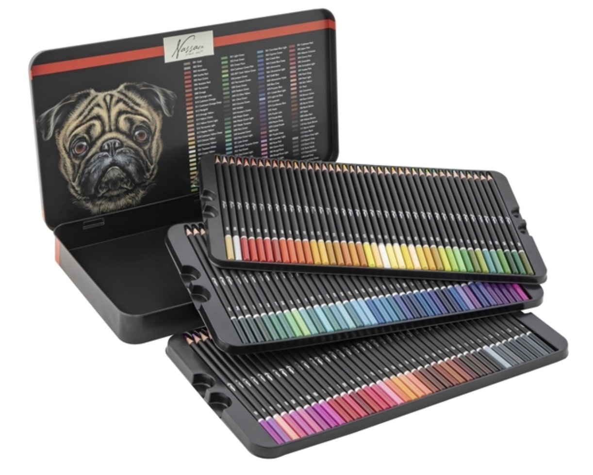 Geleverd in 1 compact blik voorzien van 3 inlegtrays met potloden.