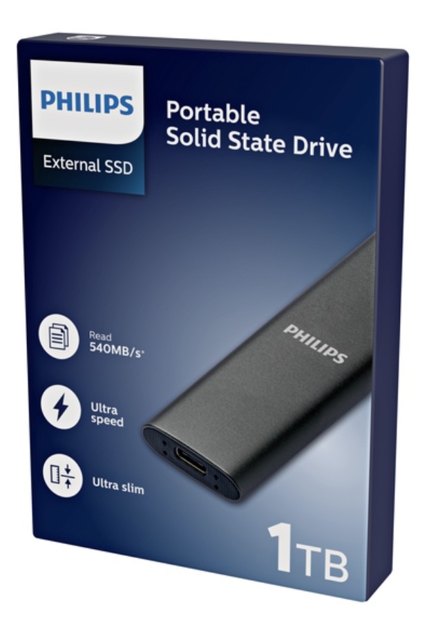 - Deze Philips SSD is 5 keer sneller dan een externe harde schijf en is de ideale oplossing voor het opslaan en uitwisselen van 4K Ultra-HD video's.