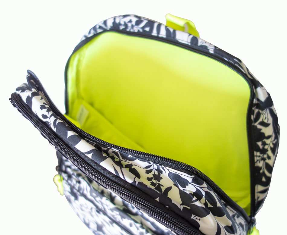 De 2 grote vakken bestrijken de volledige afmetingen van de tas. Het achterste vak is ook nog voorzien van een extra binnenvak, aan de rugzijde. Ook over de hele breedte van de tas. Hier kun je bijvoorbeeld makkelijk je A4 schriften in bundelen, zonder dat ze door de hele tas heen schieten.