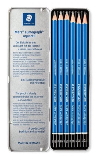 De Mars Lumograph grafietpotloden van Staedtler zijn uitstekende potloden gemaakt van het beste cederhout, uit milieuvriendelijk beheerde bossen. Het grafiet is breukvast verlijmd, de pigment afgifte is zeer goed en ze zijn ook nog eens makkelijk te slijpen. Was elk grijs potlood maar zo goed.