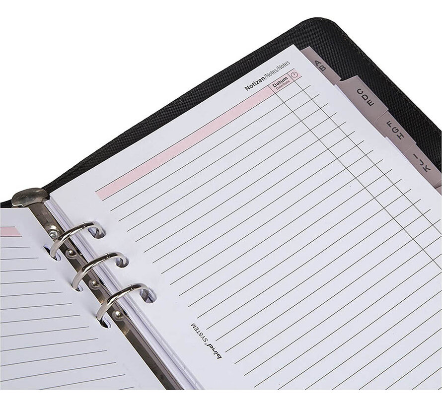 A5 Formaat organizer, navulbare agenda met spiraal. Gemaakt van een mooie kwaliteit, zacht nepleer. Voorzien van diverse papieren inhoud zoals notitiepapier en adreslijst, maar ZONDER de jaarinhoud! (Los bijbestellen, kies je gewenste uitvoering)